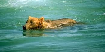 There is a girl happily swimming in the swimming pool, while a bear is swimming in another river. They are in different bodies of water, as shown in the following pictures.